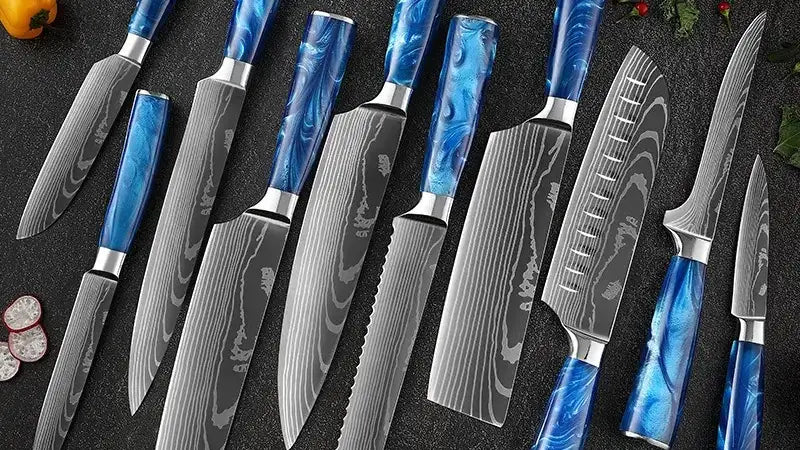 Set de Dix Couteaux Japonais en Acier Damas - Chef Takumi - Ice Blue