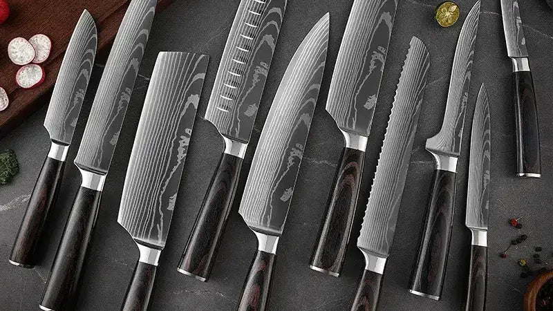 Set de Dix Couteaux Japonais en Acier Damas - Chef Takumi - Natural Teak