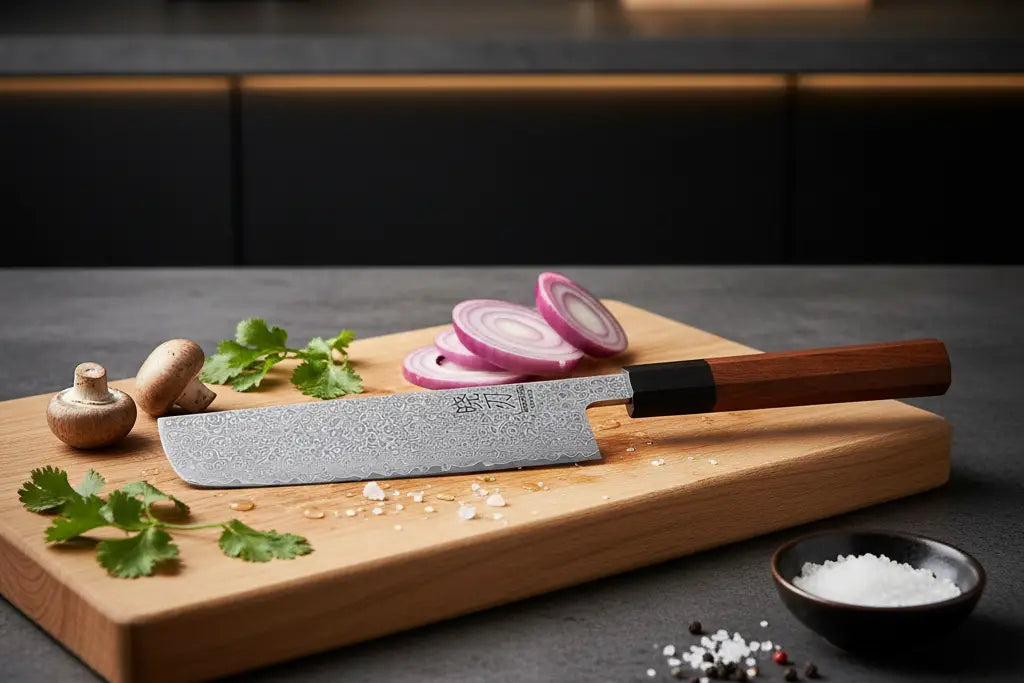 Couteau Japonais Kiritsuke en Acier Damas - Manche en bois de rose