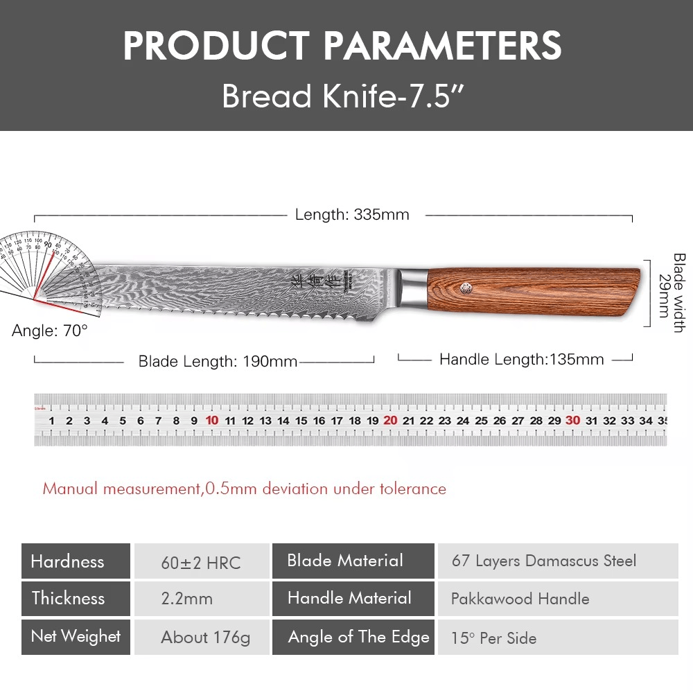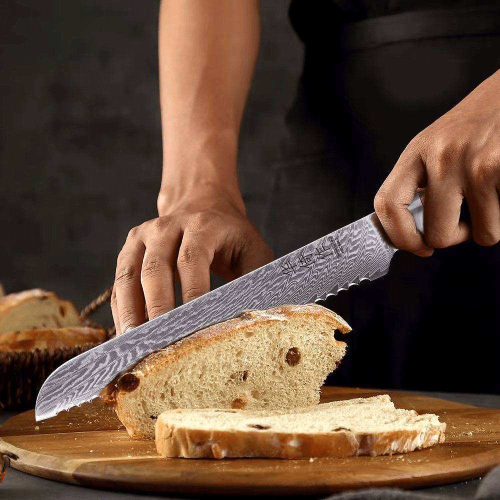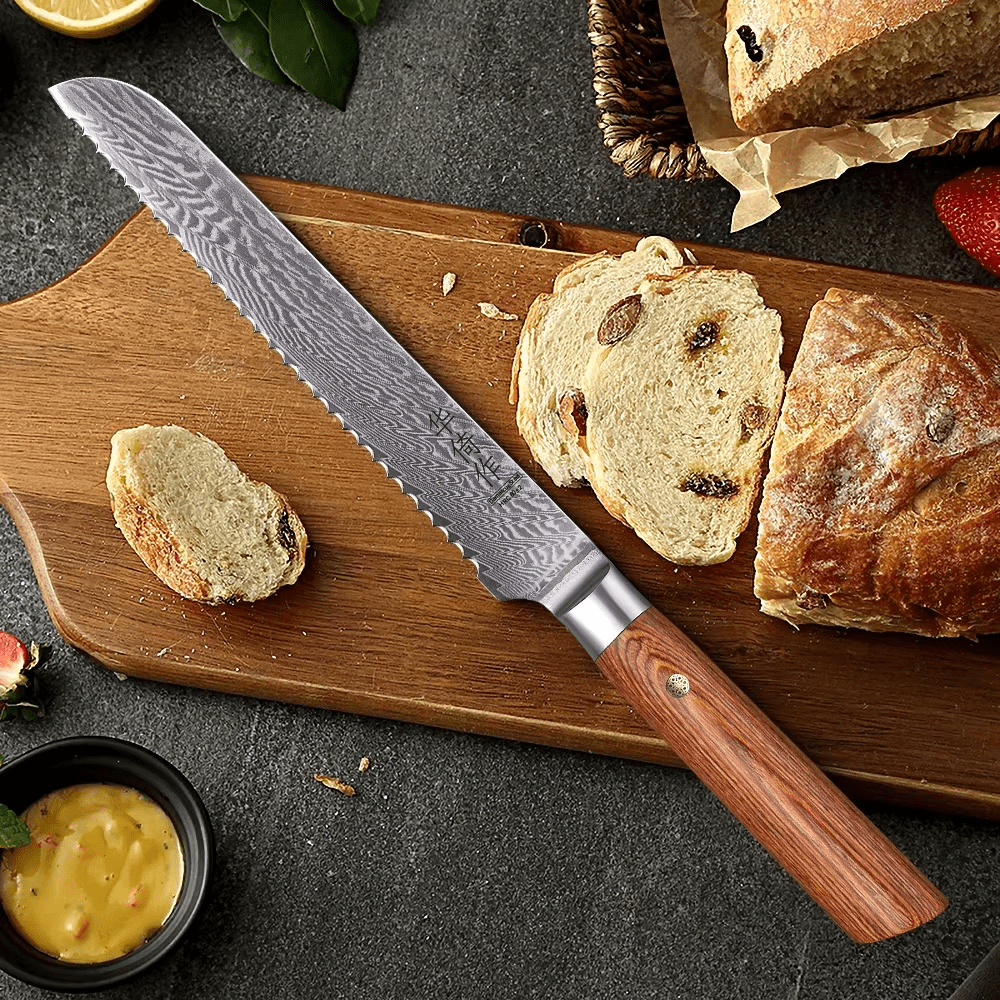 Couteau Japonais A Pain en Acier Damas - Manche en bois pakka