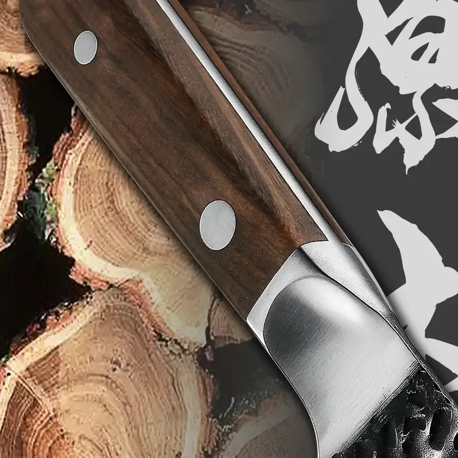 Sa lame, composée de 67 couches d'acier Damas, offre une netteté spectaculaire et une robustesse incomparable. Trancher, émincer, et découper les légumes devient un jeu d’enfant grâce à une précision inégalée. Chaque coupe est fluide et précise, transformant vos gestes en véritables œuvres de maîtrise.