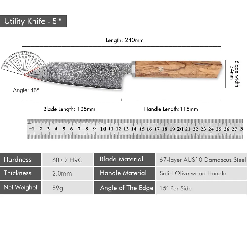 Avec sa lame d'exception composée de 67 couches d'acier Damas, ce Nakiri offre une précision de coupe inégalée et une robustesse qui surpasse toutes les attentes. Chaque tranche et chaque découpe se fait en douceur, transformant la préparation de légumes en un geste précis et rapide.