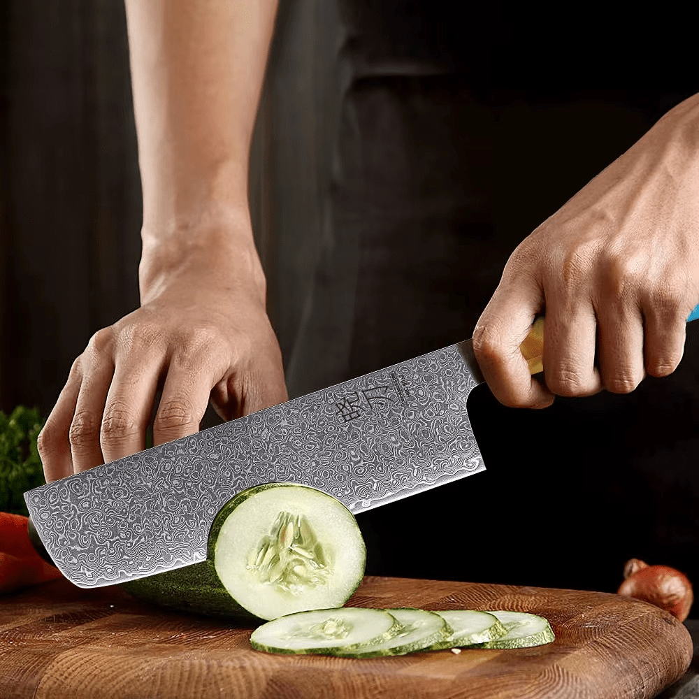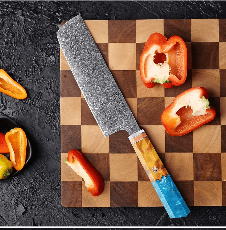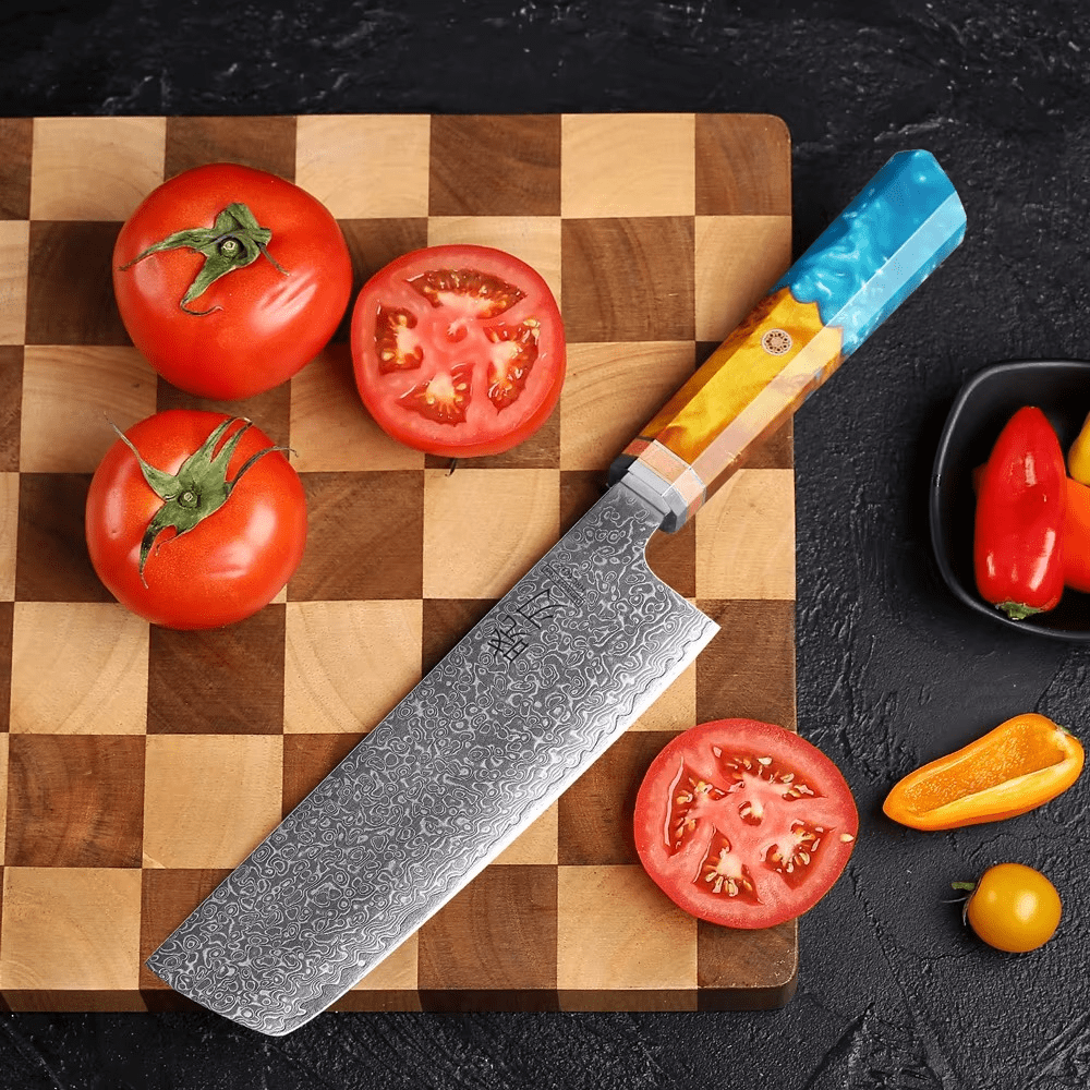 Découvrez l'essence de l'artisanat japonais avec notre couteau Nakiri en acier inoxydable Damas, conçu pour les chefs les plus exigeants.