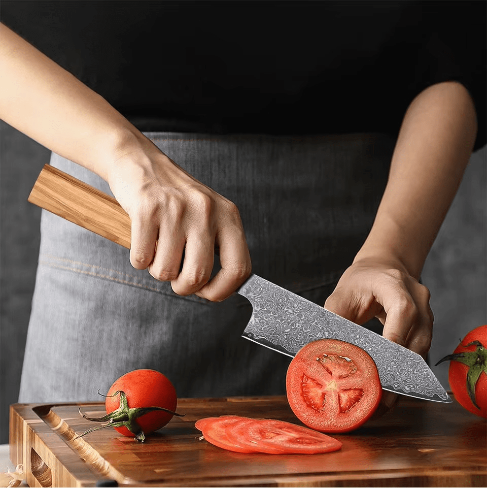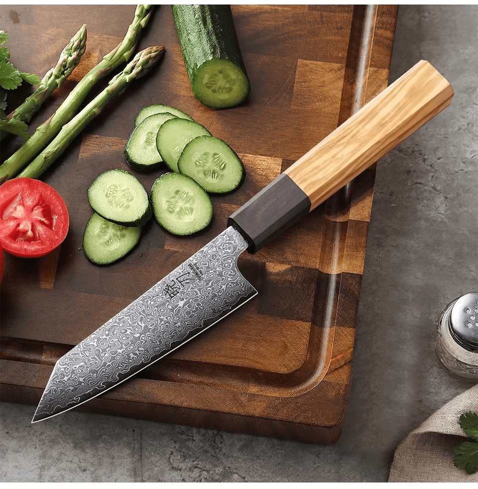 Couteau Japonais Petty en Acier Damas - Manche en bois d’olivier