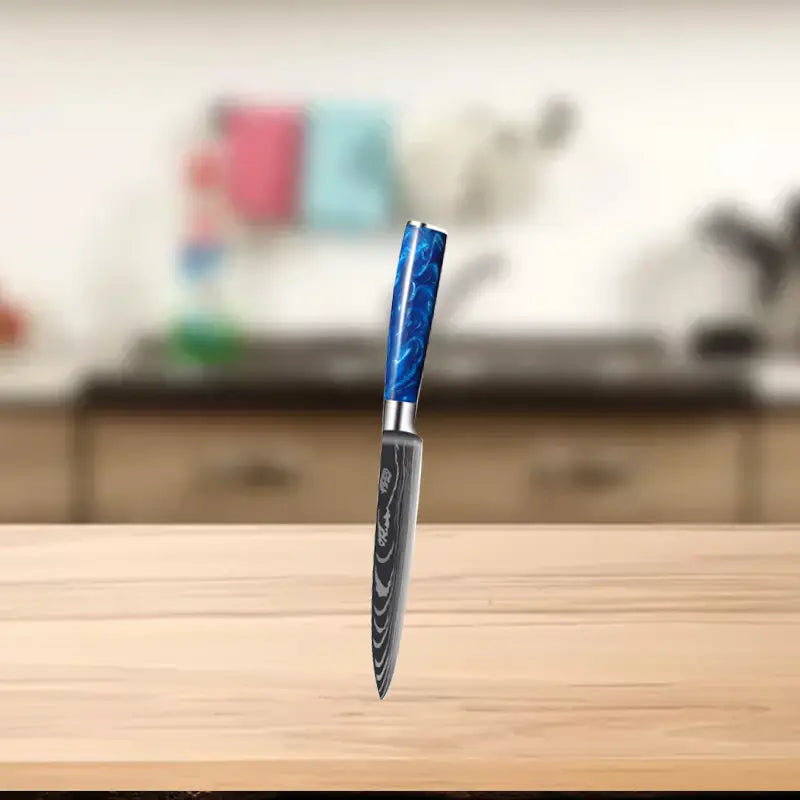 Les manches en bois stabilisé bleu ne sont pas seulement une prouesse technique, mais aussi une célébration de l’esthétique japonaise. Chaque manche, unique par ses nuances de bleu profond et ses veines naturelles, évoque les paysages marins du Japon. Stabilisé pour une résistance optimale à l'humidité et au temps, ce matériau allie luxe et durabilité, offrant une prise en main ergonomique et confortable. Chaque mouvement devient fluide, chaque geste un plaisir.